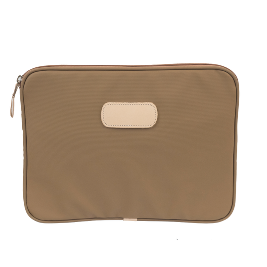This 13" padded computer case is made of coated canvas with natural leather details. In order to pick the right size for your laptop, measure the actual horizontal and vertical length of your computer which is often very different than the advertised laptop size (which is based on a diagonal screen measurement). Is your laptop 13" or less across? If so, this is likely the size you need.