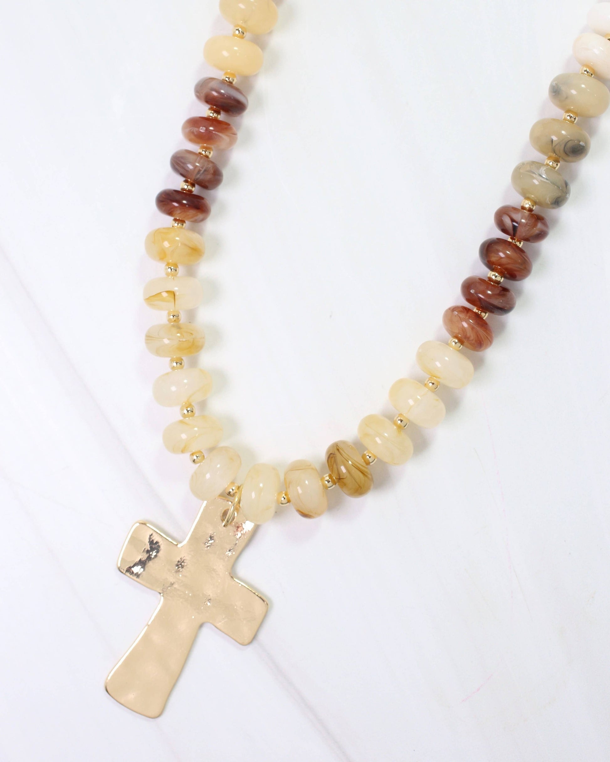 Berkeley Stone Beaded Cross Necklace Natural: Default