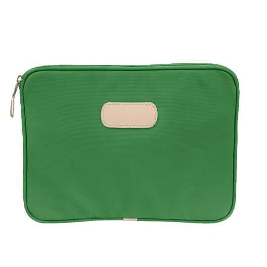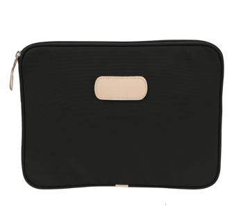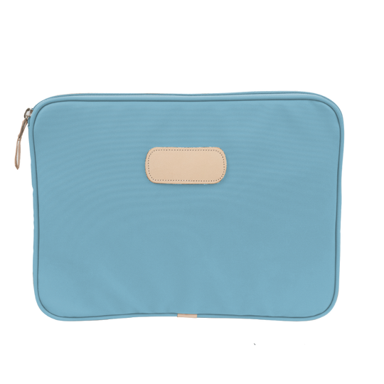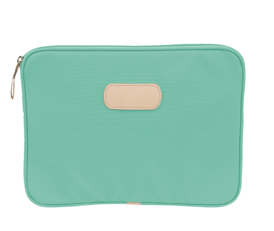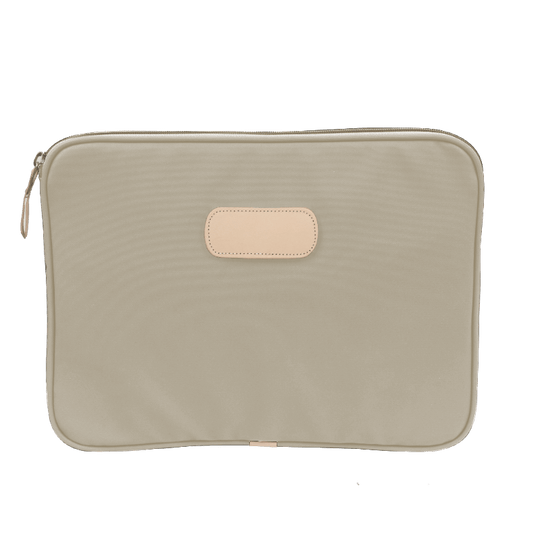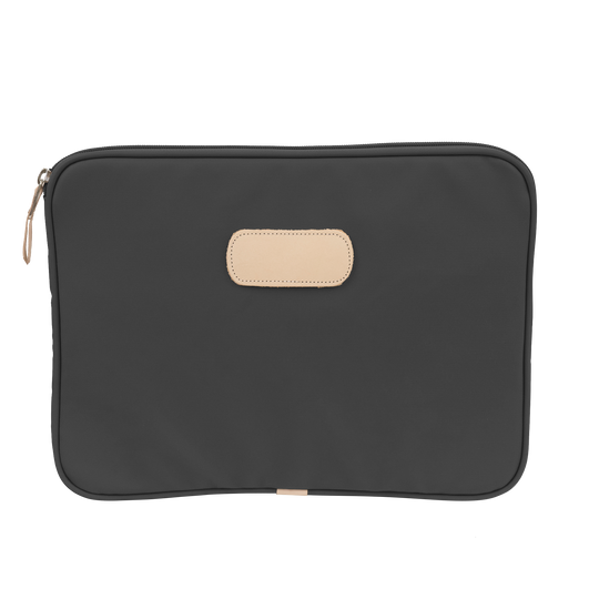 This 15" padded computer case is made of coated canvas with natural leather details. In order to pick the right size for your laptop, measure the actual horizontal and vertical length of your computer which is often very different than the advertised laptop size (which is based on a diagonal screen measurement). Is your laptop 15" or less across? If so, this is likely the size you need.