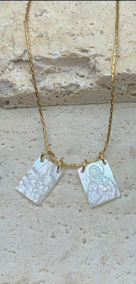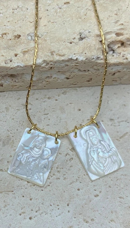 Jesus & Mary Natural Pearl Shell Scapular Pendant Necklace