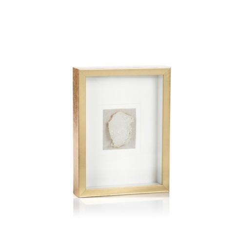 Add an elegant touch to your decor with this very unique framed crystals. The crystal is artificial but quite detailed giving a sense of calming and harmony to your space. Set on a natural-colored linen-textured backing. The polystyrene frame is gold-tone finished and crystal is protected under glass. Features a white floated top paper mat and artificial crystal is mounted to a natural linen-textured bottom mat. Polystyrene gold finish frame. Vertical display. To clean glass, choose a non-abrasive commercial glass cleaner, or use warm water and a soft, lint-free cloth. Wring out excess water and wipe surface. Dry.
