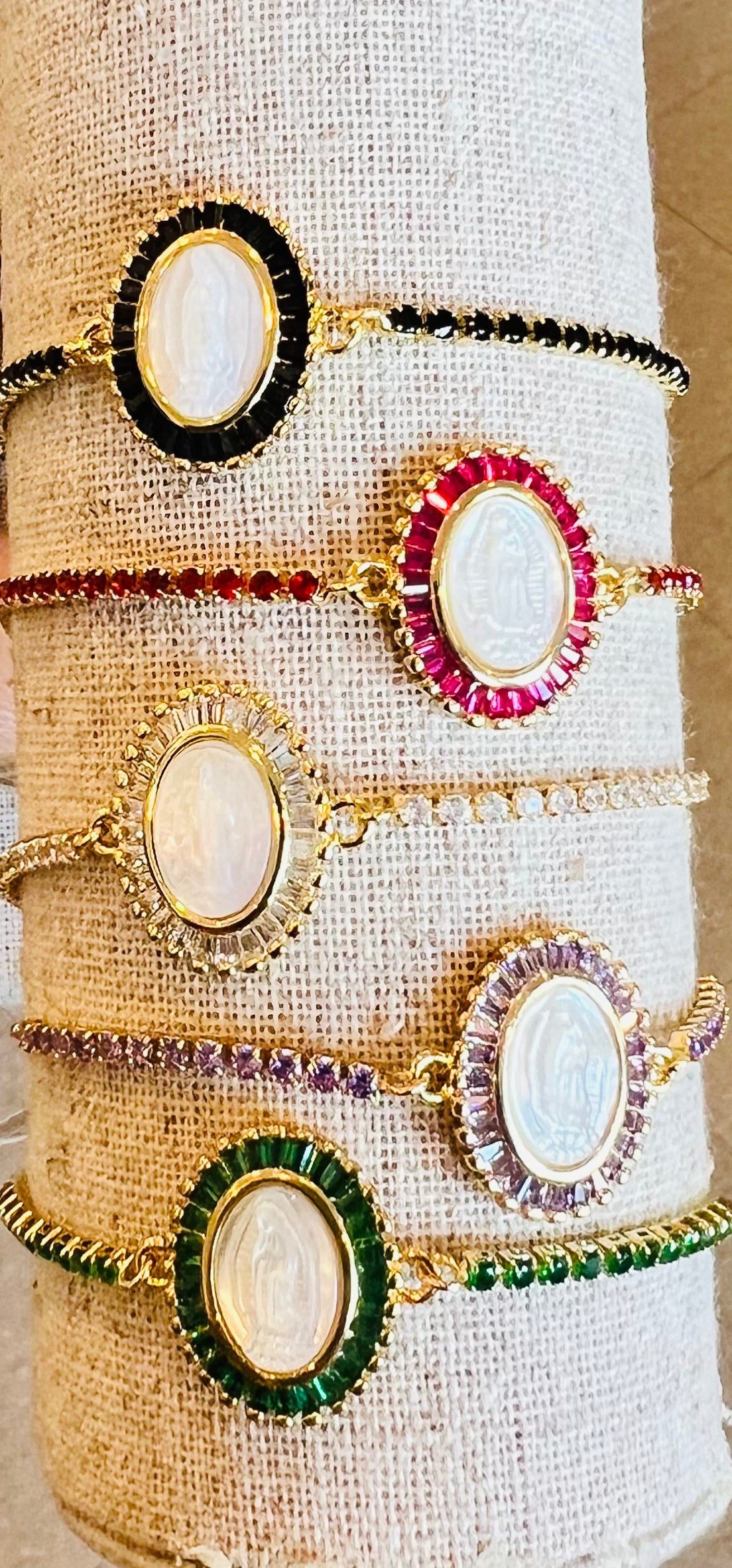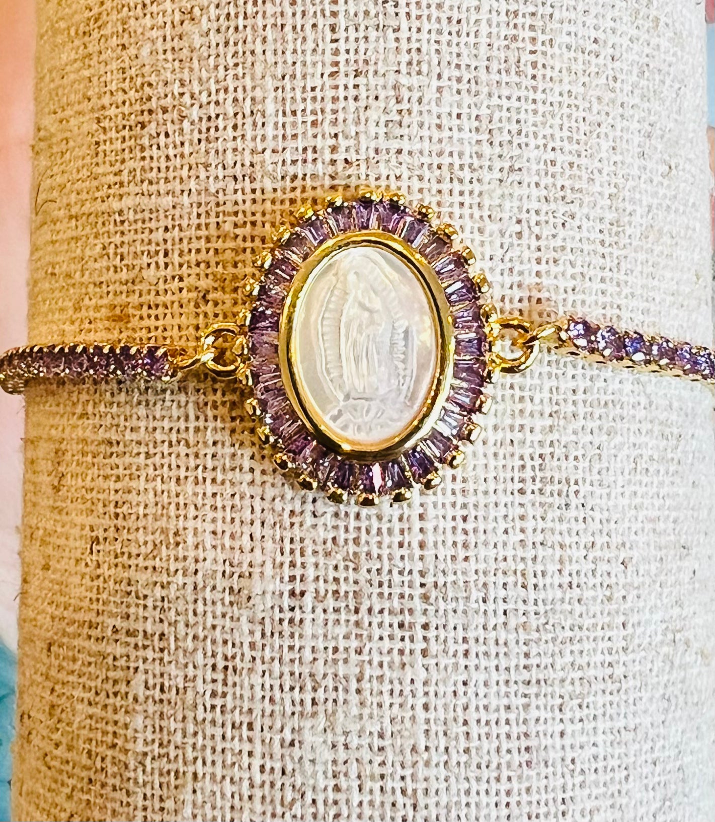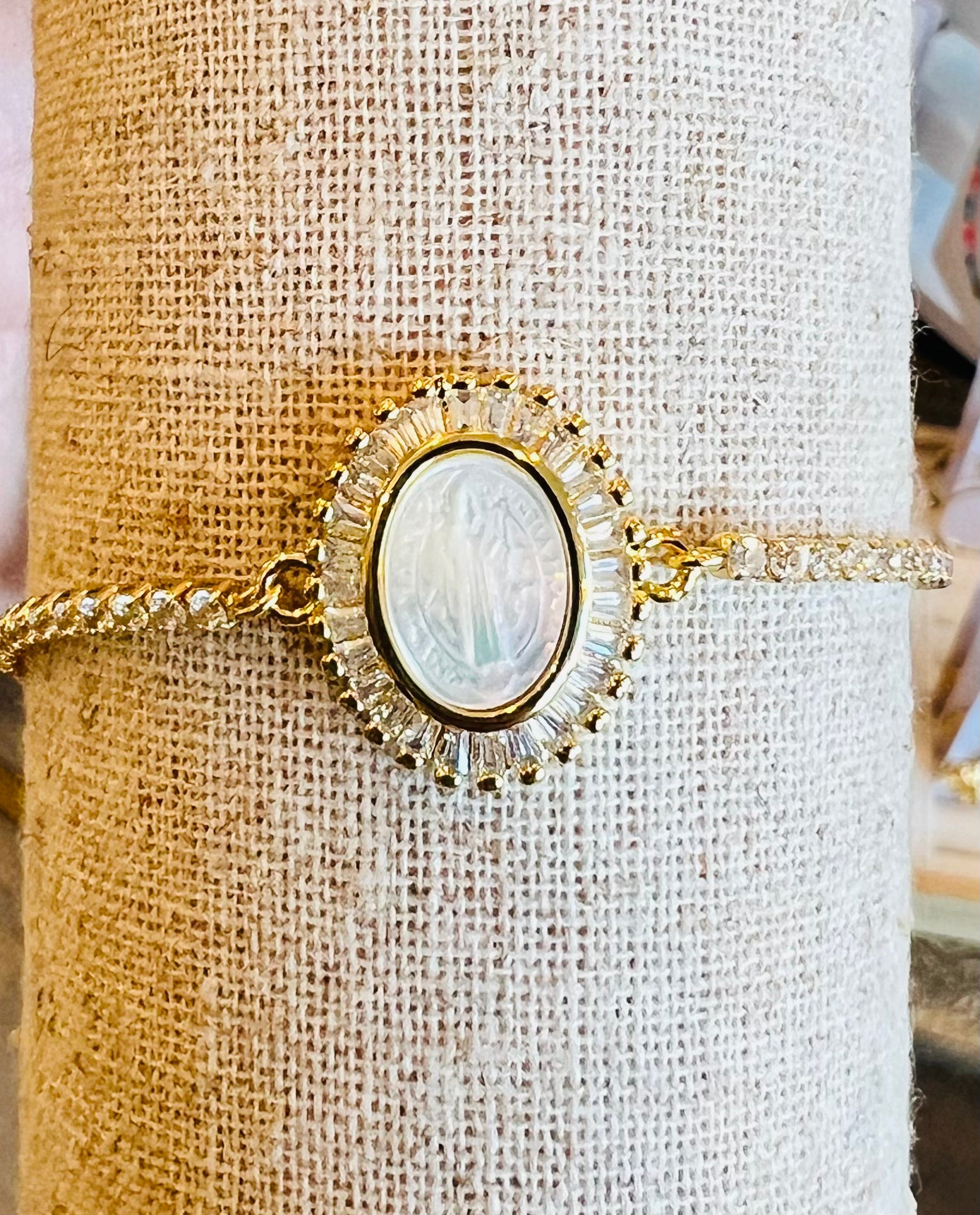 Gold Plated Jesus Virgin Mary Oval Shell Crystal Zircon Pendant Bracelet (5 Colors)