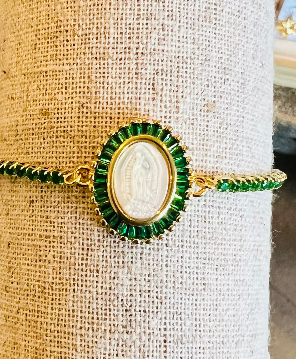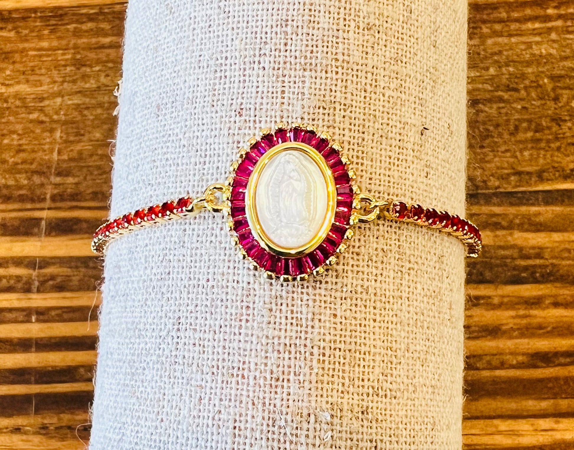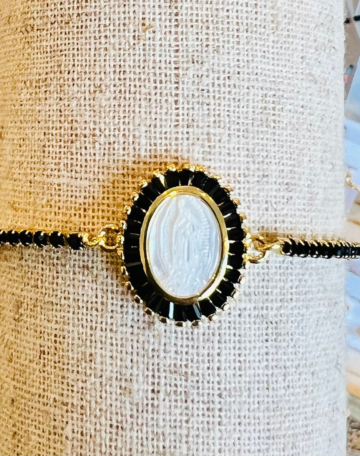 Gold Plated Jesus Virgin Mary Oval Shell Crystal Zircon Pendant Bracelet (5 Colors)
