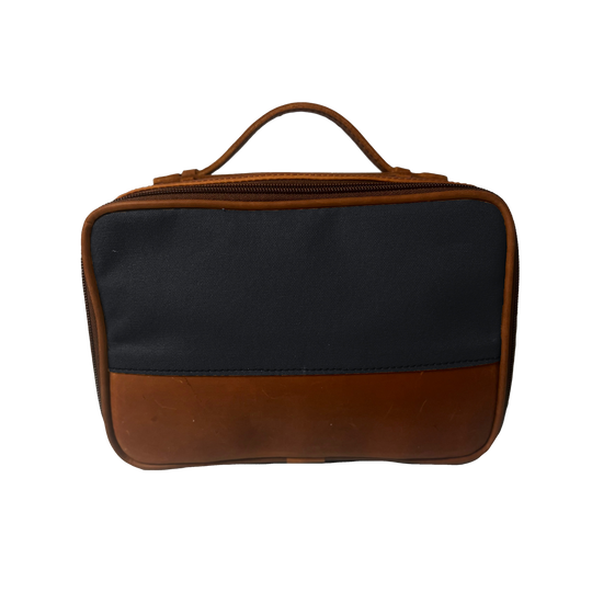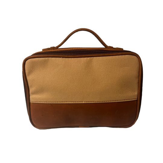 Equally important as your travel bag itself, a proper dopp kit can make all the difference when you’re living out of a suitcase. Rugged canvas and premium oiled leather on the outside with lined elegance on the inside.