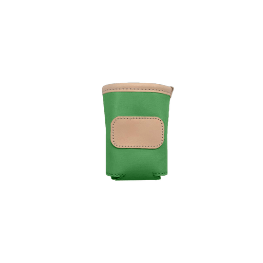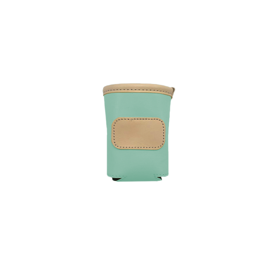 A new design for an old favorite. Keep your drinks cold with this insulated collapsible can cooler. Coated canvas with Natural Leather trim.