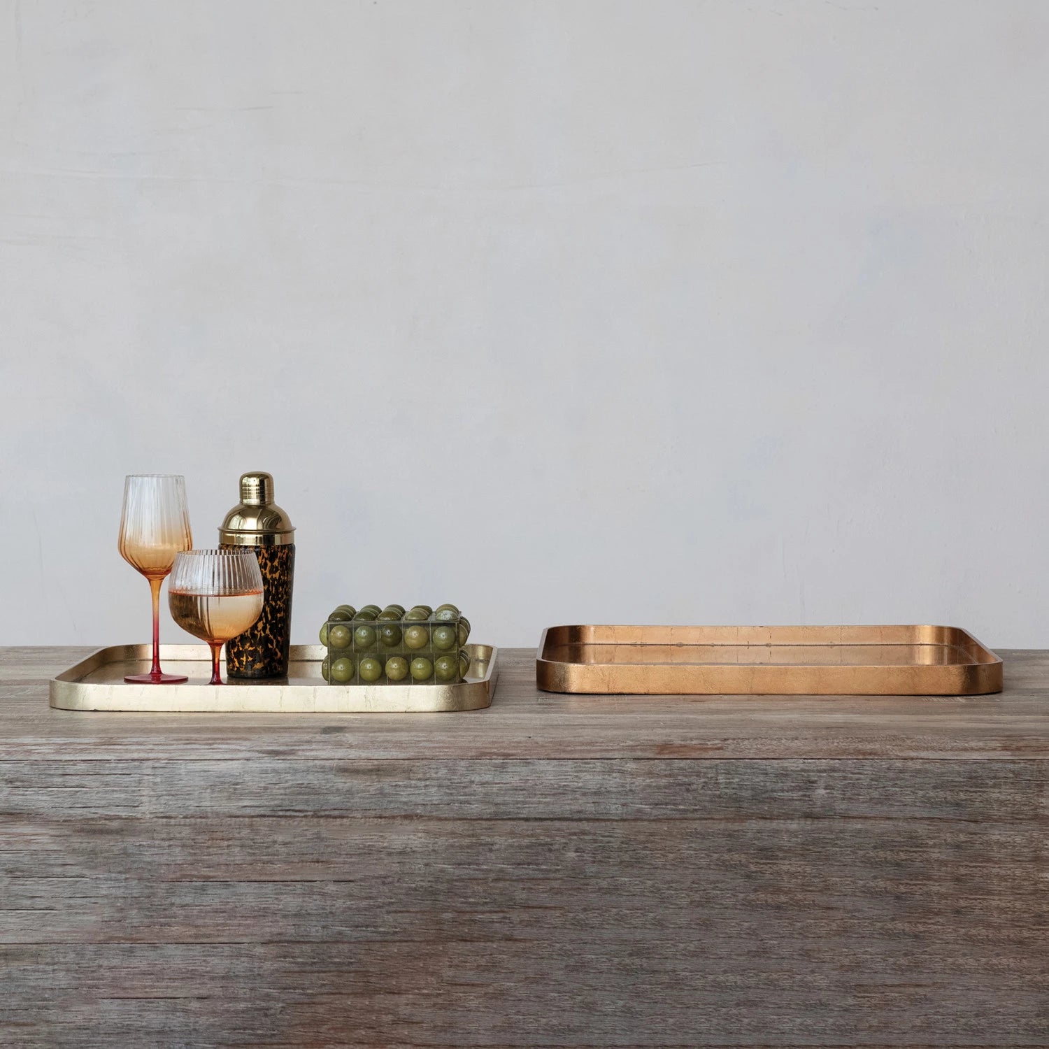 MDF Lacquered Trays w/Foil, Copper & Gold Finish (2 Sizes)