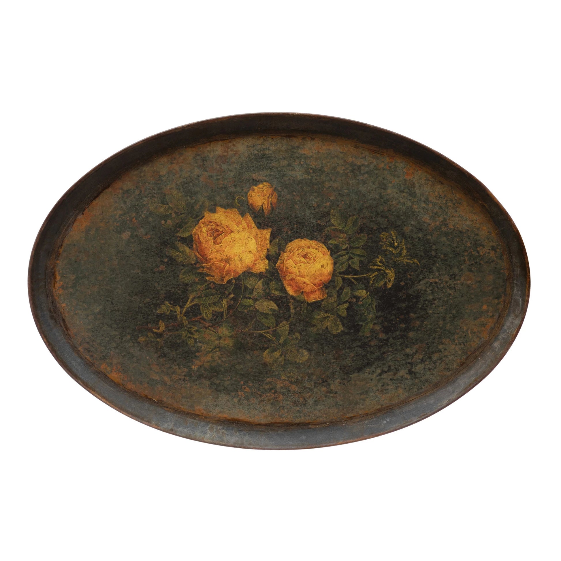 These trays are perfect for kitchens, coffee tables and entryways. Hand-painted, these trays are made out of metal, and features a beautiful multi-colored rose pattern. Perfect for filling with fruits, decorative accents, and small plants.