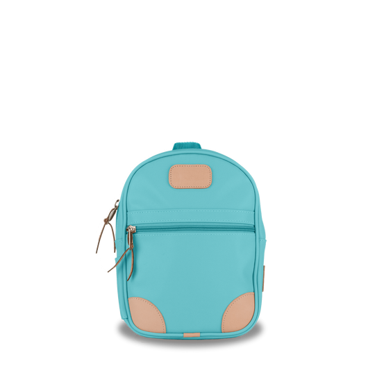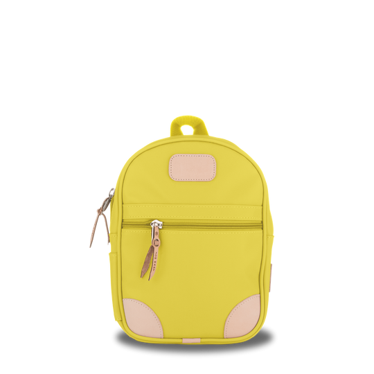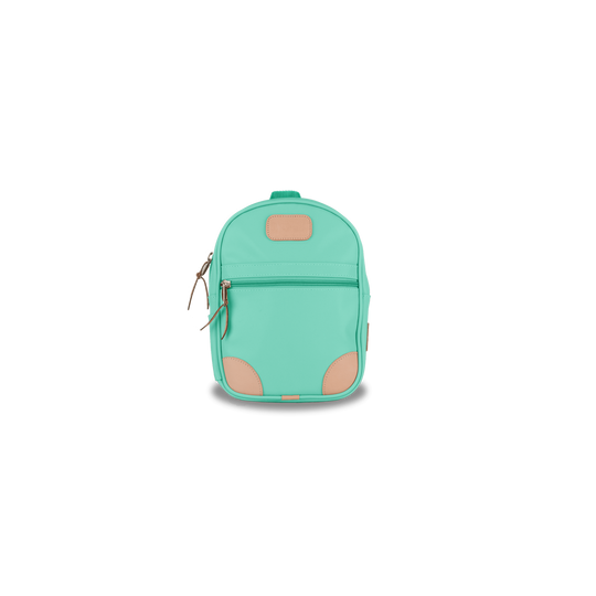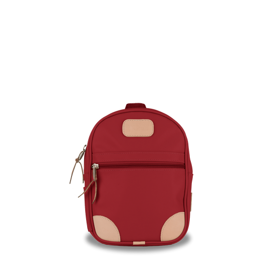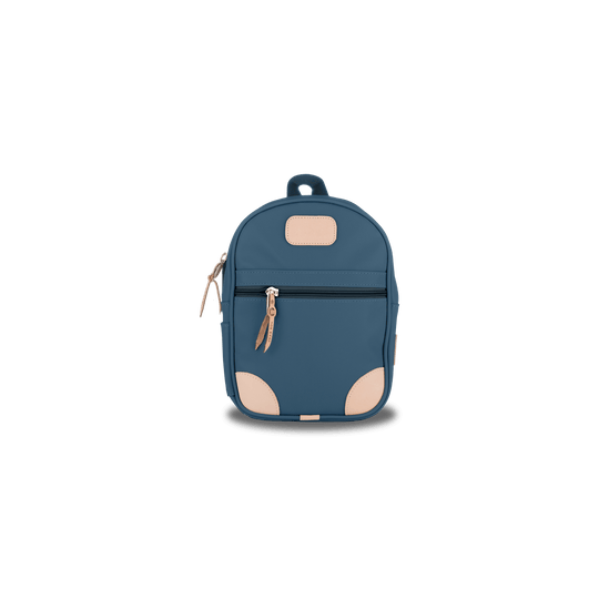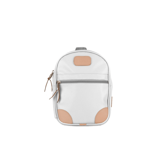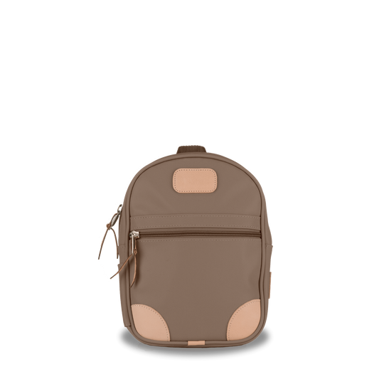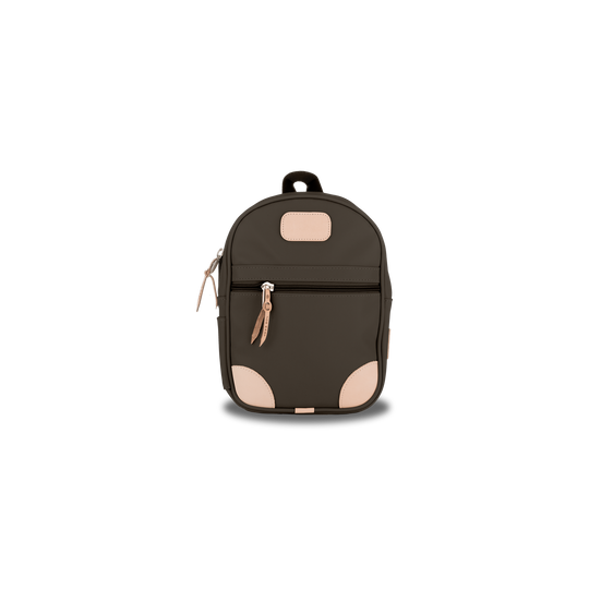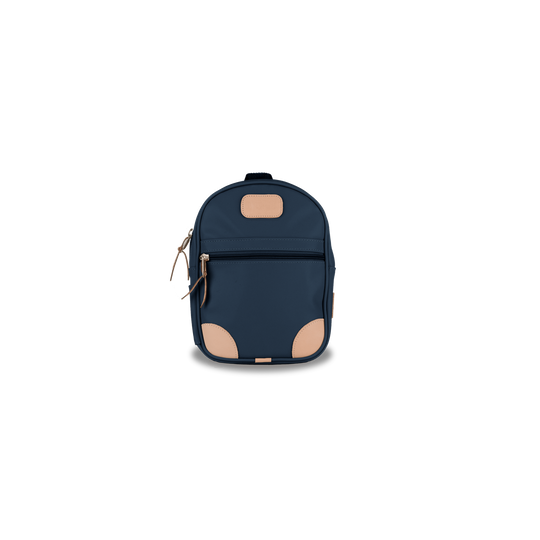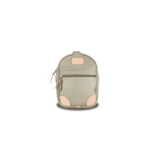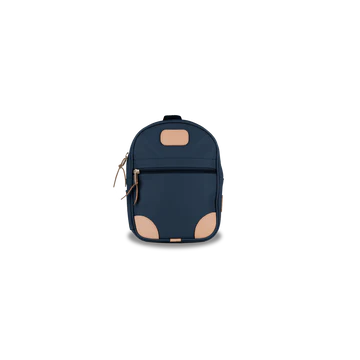 Start them young with a Jon Hart mini backpack. Perfect for the little that wants to be a big kid and still travels light. With just enough room for the essentials this bag will stay light so that you don't end up carrying it for them. Coated canvas with natural leather trim.