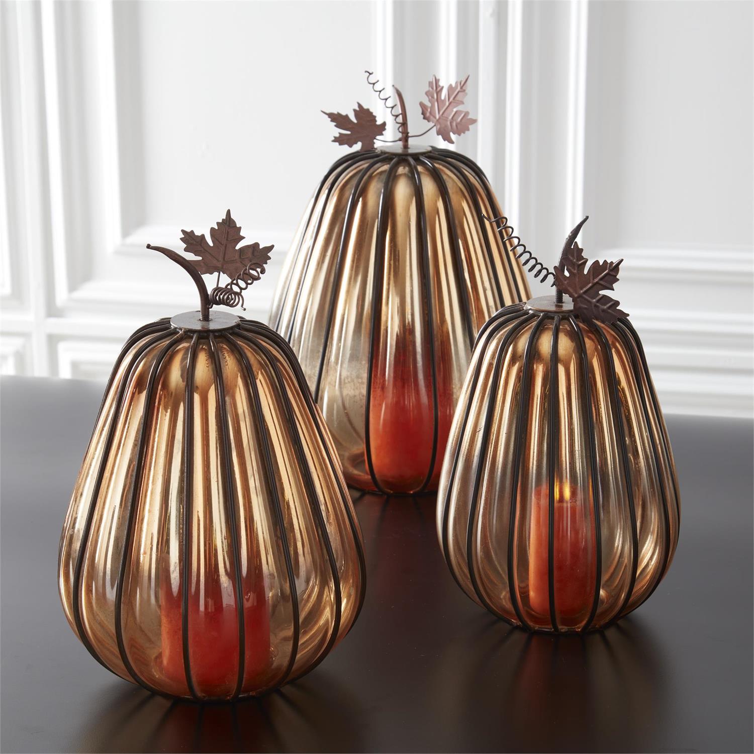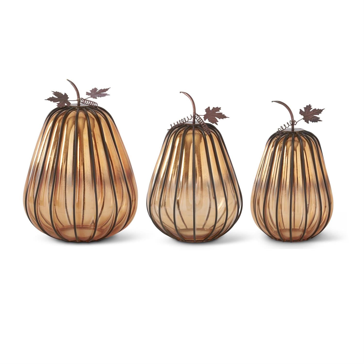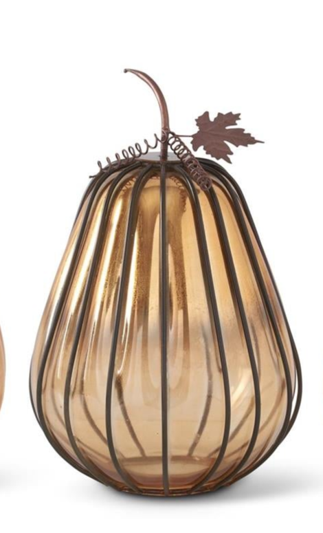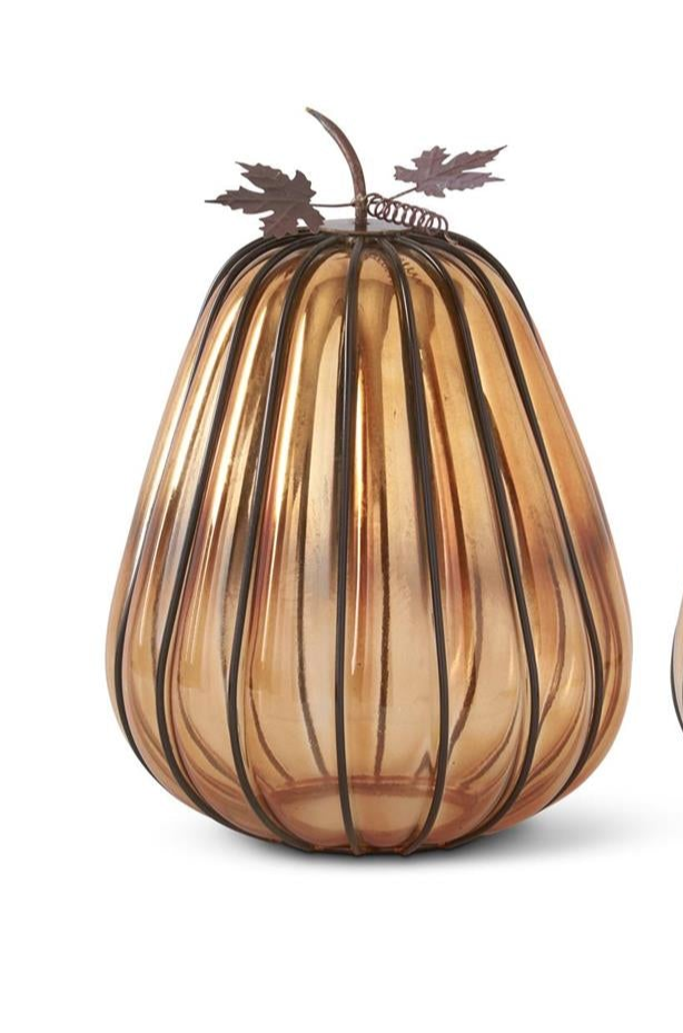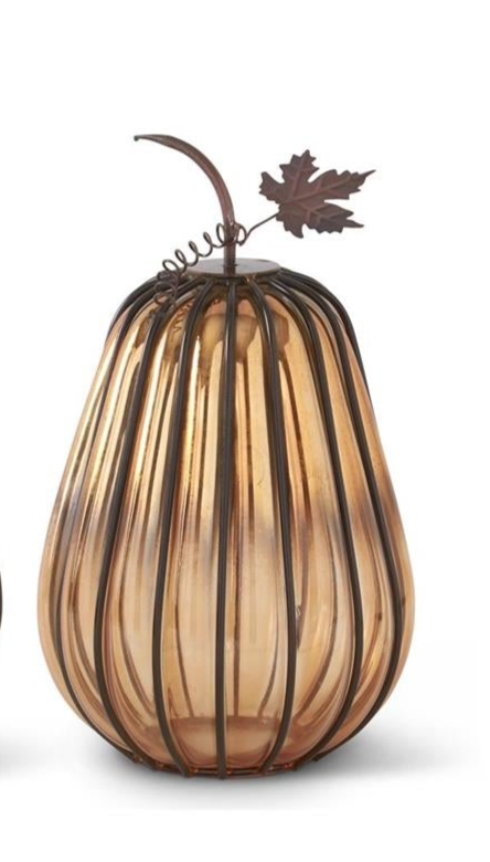 Orange Glass Pumpkin w/Dark Metal Stems (3 Sizes)