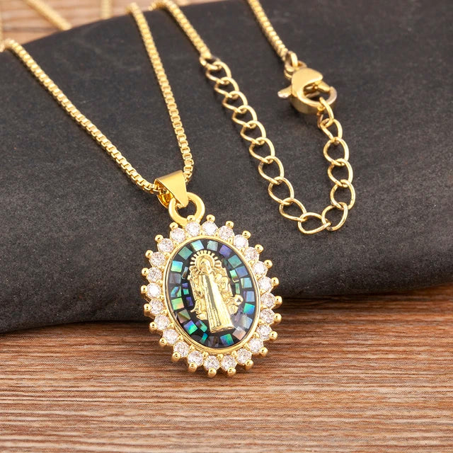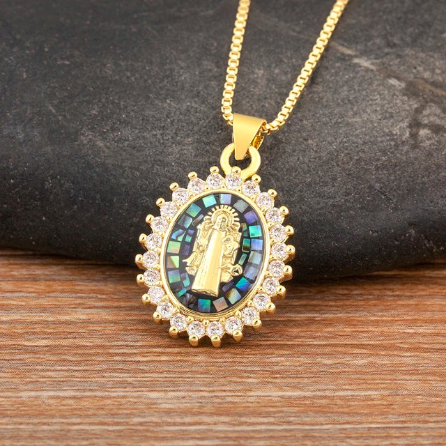 Religious Crystal Zircon Charm Pendant Necklace - assorted colors