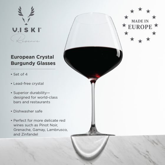 Sparkling European lead-free crystal meets supreme durability for wine glasses that are useful, beautiful, and elegant. Bring classic style to your entertaining with high-end crystal. This stemware is ideal for complex red wine but perfectly suitable for rosé or white wine.