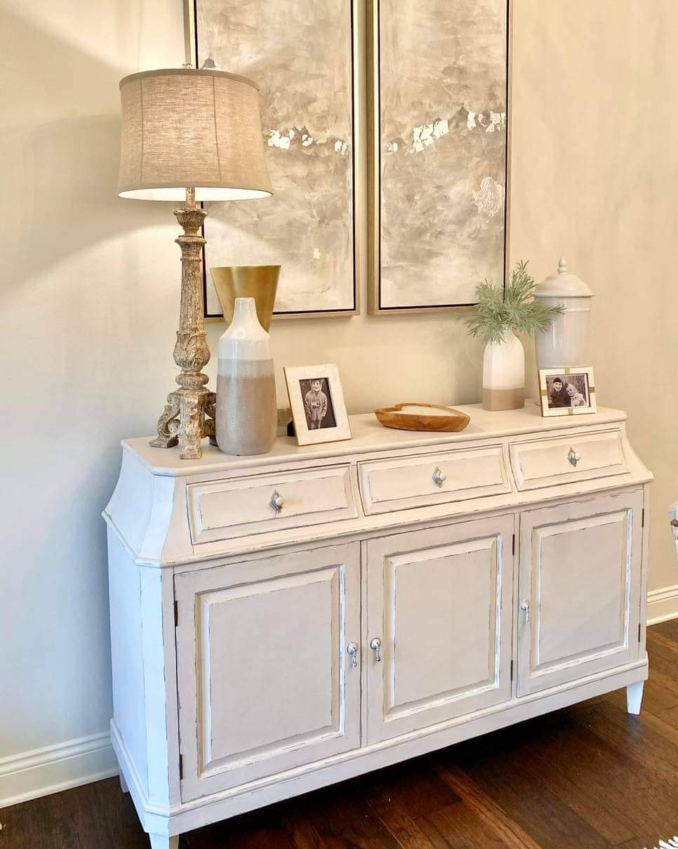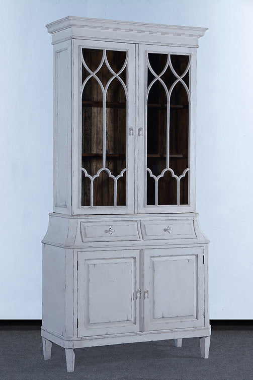 Two Drawers, Tapered Legs, Simple Design With Old World Distressing, and Solid Wood Construction in an Antique White Finish.