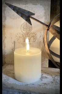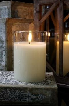 Our latest LED candle collection is made of ivory wax, poured into shimmering metallic glass jars. The LED flame technology creates an incredibly realistic and subtle flicker which glows 250 hours per set of AA batteries. Set convenient timers and adjust the glow with the optional remote control, sold separately.
