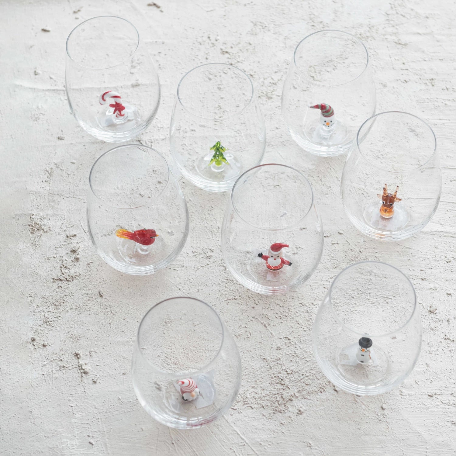 Stemless Wine Glass w/Holiday Figure Inside (8 Styles)