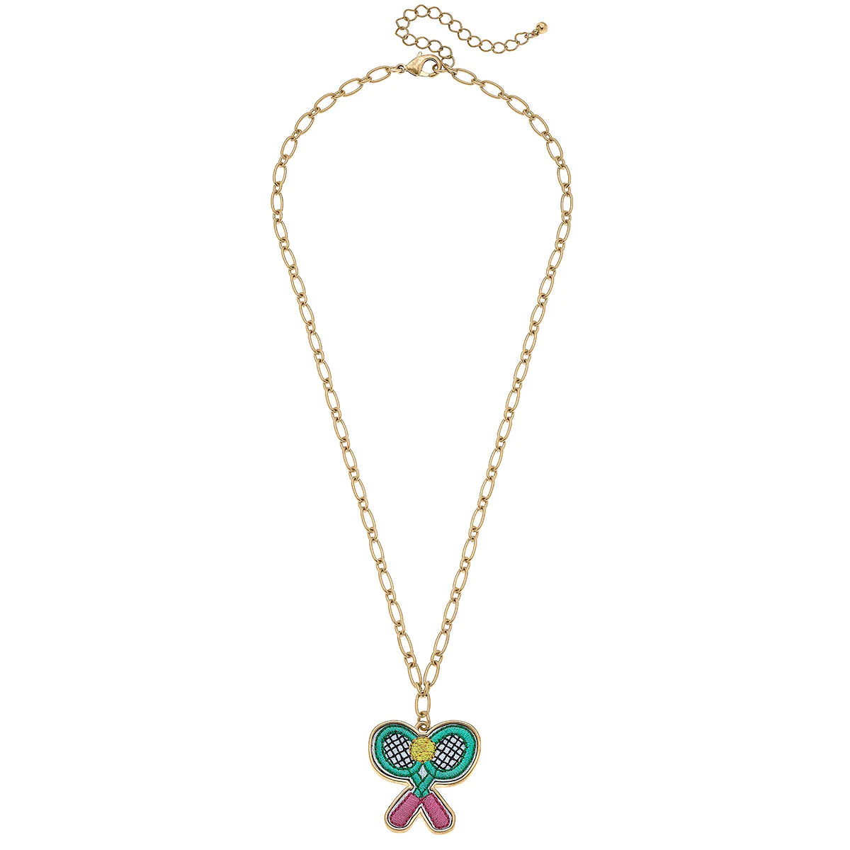 Stuck On You Tennis Racket Patch Necklace in Green & Pink