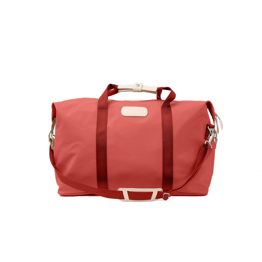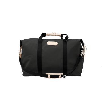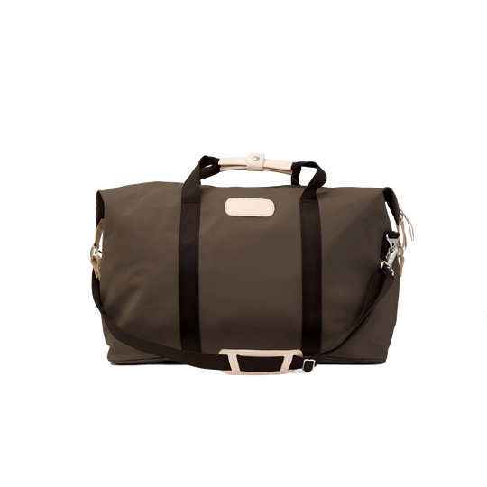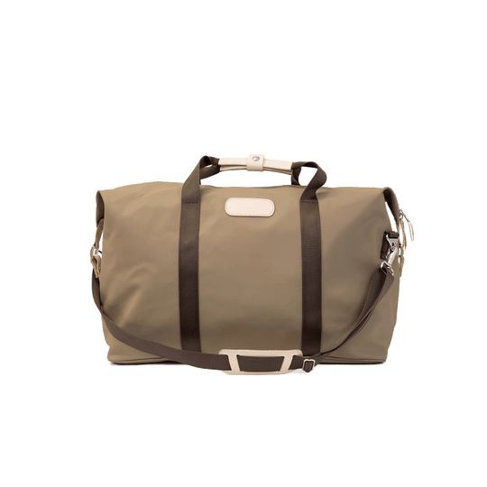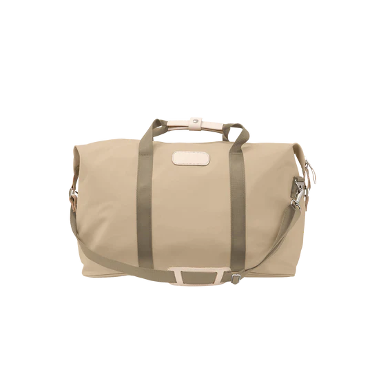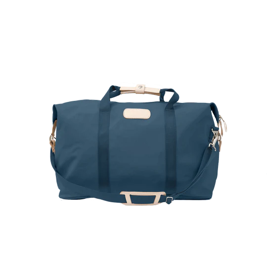 Our Weekender bag is perfect for short weekend trips. The Weekender features interior open pockets and a small exterior zippered pocket. Versatile snaps on the side allow your Weekender to be longer and narrower or shorter and wider. Comes with detachable shoulder strap and leather handles.