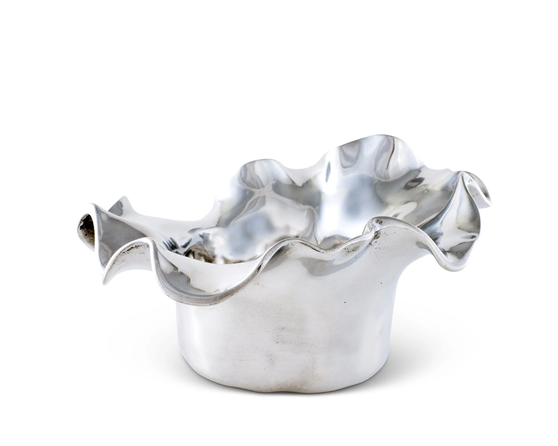Keep your wine standing upright and ready for serving on this Arthur Court Carmel wine coaster that mimics the ocean's waves. Styled after the fairy tale village of Carmel-by-the-Sea in California, the 3-inch flowing edges of this coaster beautifully resemble the rolling waves of the Pacific Ocean. The flat bottom is large enough, at 7 inches in diameter, to hold a single wine bottle snugly so it won’t tip over and spill. This coaster will add a touch of the ocean to a nautical-themed dining room or bring back memories of vacations at the beach or outdoor barbecues by the sea. The strong aluminum alloy material provides long-lasting use, and the shiny silver color gives off a modern, elegant flair.